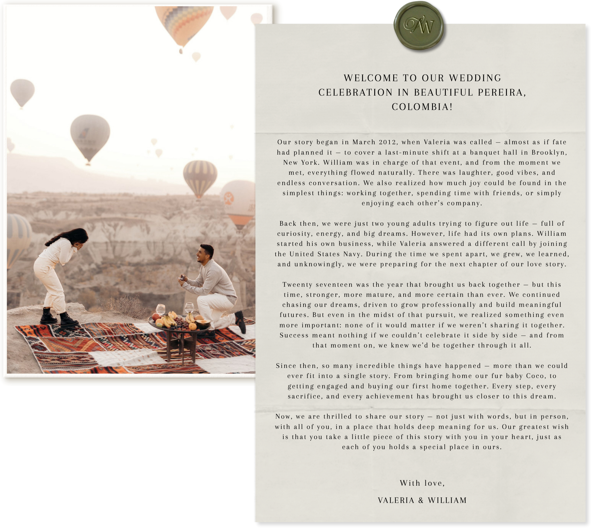 "Love, coffee, and mountains... We are getting married in the heart of the Eje Cafetero, and you are cordially invited to celebrate with us."