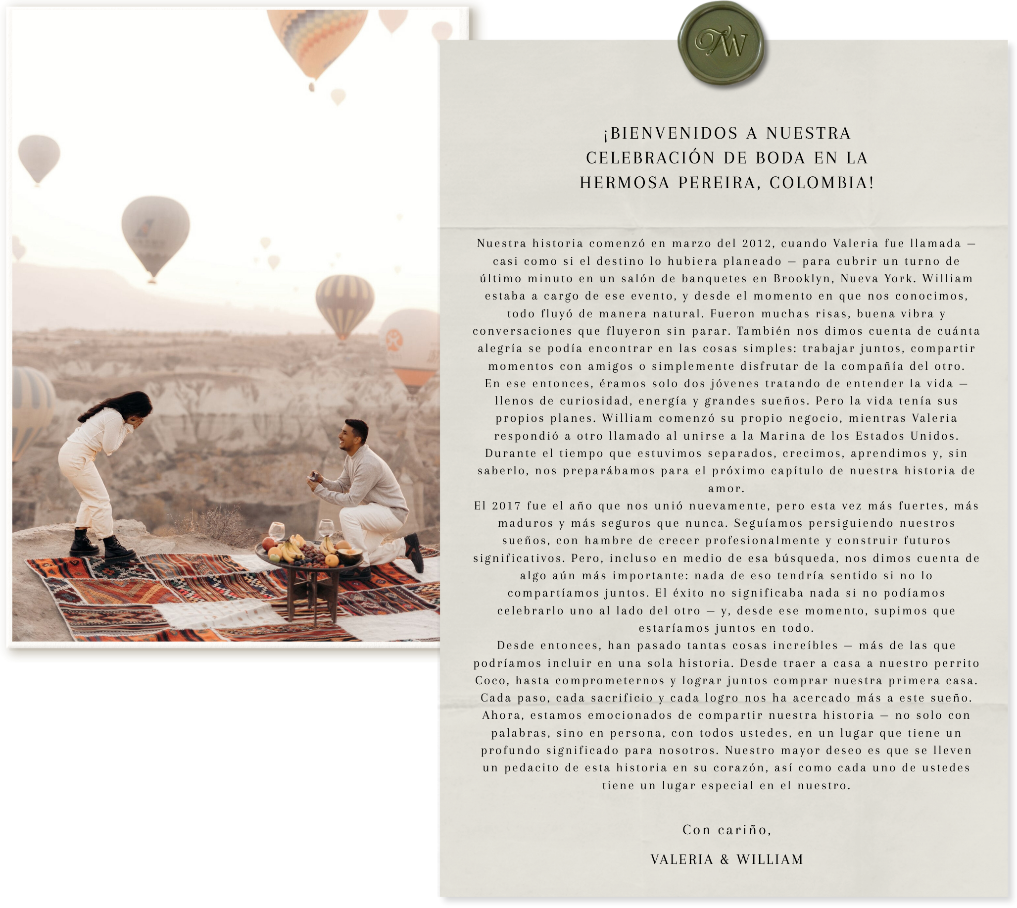 “Amor, café y montañas… Nos casamos en el corazón del Eje Cafetero y estás cordialmente invitado a celebrar con nosotros.”